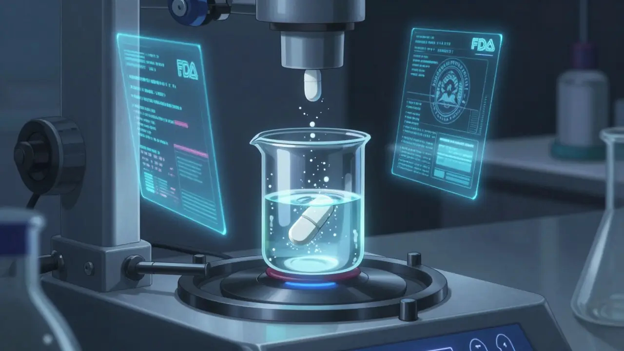 The FDA uses dissolution testing to ensure generic drugs release their active ingredients at the same rate as brand-name versions. This lab-based method replaces human trials for many drugs, ensuring safety, effectiveness, and consistency without unnecessary costs.