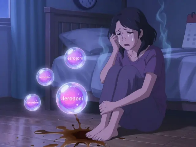 Most people think of depression when they hear “mood changes.” But perimenopause doesn’t always look like sadness. In fact, research from Harvard Health and the Cleveland Clinic shows that irritability and anger are more common than deep sadness. On Reddit’s r/Perimenopause forum, 78% of women reported sudden, intense rage episodes - triggered by things that wouldn’t normally bother them. A Healthline survey found 63% of women said their irritability was damaging relationships. One woman wrote: “I yelled at my 10-year-old for leaving a sock on the floor. Then I sat on the floor and cried because I didn’t recognize myself.” This isn’t “hormonal PMS.” It’s different. Premenstrual dysphoric disorder (PMDD) follows a cycle - symptoms show up 7-10 days before your period and vanish when it starts. Perimenopausal mood swings? They come and go randomly. You might feel fine for weeks, then crash for days. No pattern. No warning.Why Standard Depression Treatments Often Fail